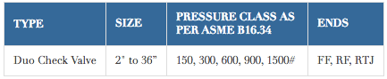 Unimech Oil & Gas Duo Check valves are defined as the mechanical device which allows the flow of fluid to go in only one direction.